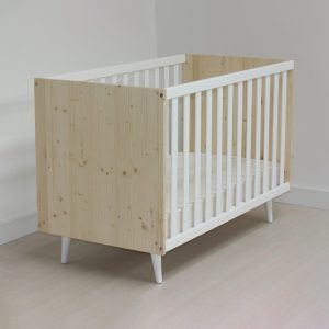 El somier de nuestra cuna cuenta con cinco posiciones y está fabricado en superpan de 19mm, un material patentado que proporciona máxima seguridad para el bebé debido a la ausencia de agujeros u orificios, lo que permite utilizar colchones delgados. Con medidas de 122,5 x 93 x 65,5 cm, cuenta con cuatro ruedas, todas con freno, lo que permite una fácil movilidad. Disponible es dos colores, madera natural o blanco.