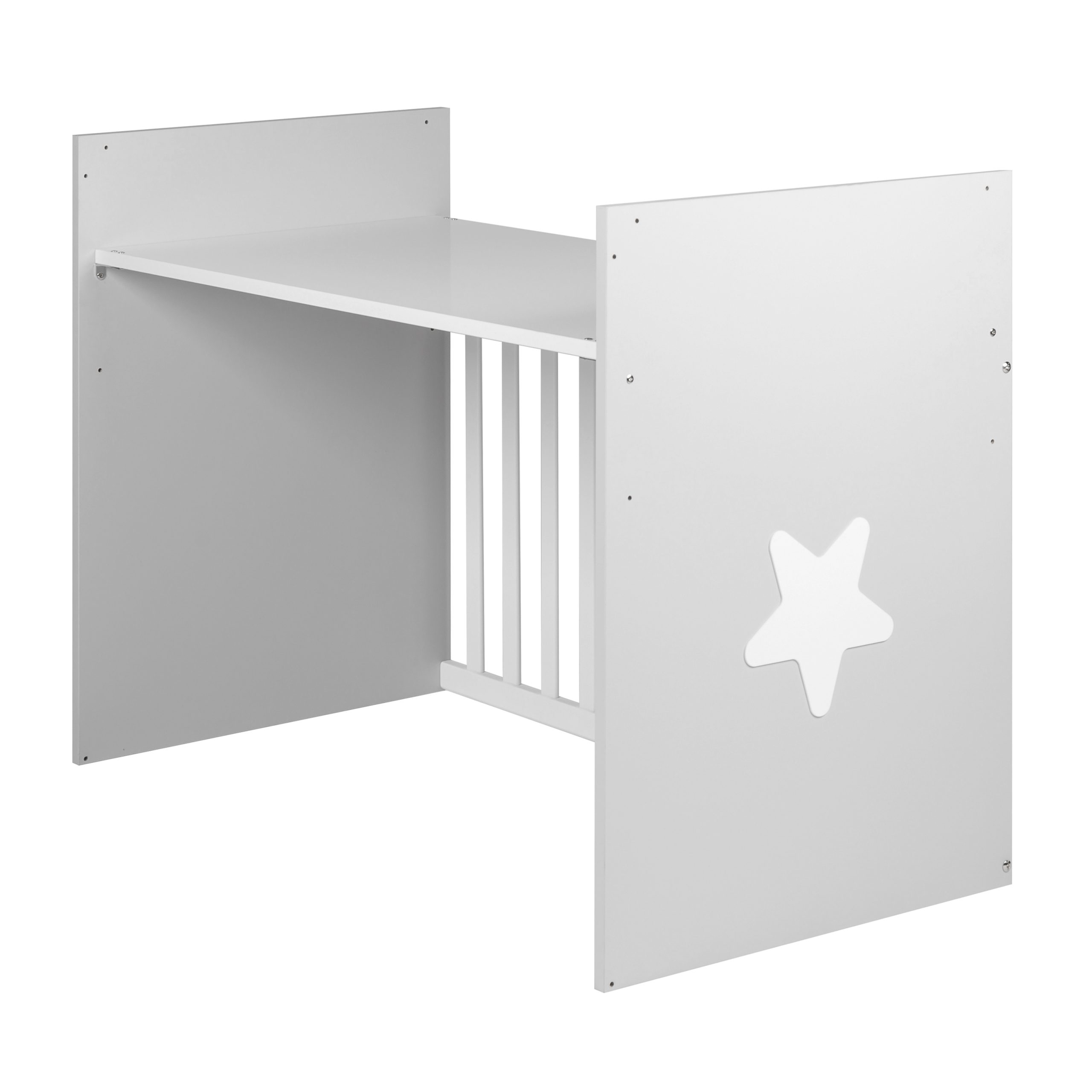 La cuna cuenta con cinco posiciones de altura, con las siguientes medidas desde el suelo al somier: Posición 1 – 28cm, Posición 2 – 35cm, Posición 3 – 41cm, Posición 4 – 47cm.