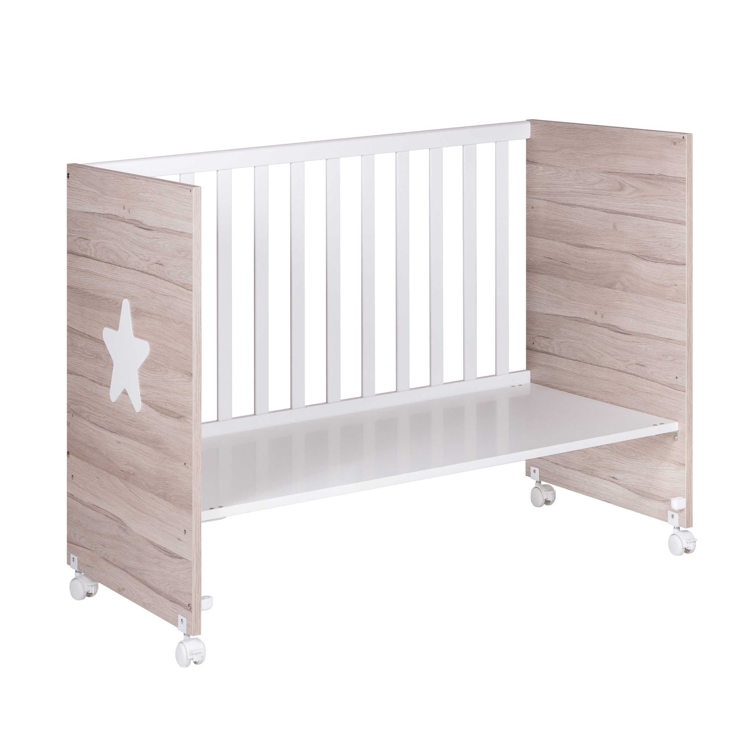 Características: 2 posiciones de somier / barandilla abatible / Sistema push / Con ruedas