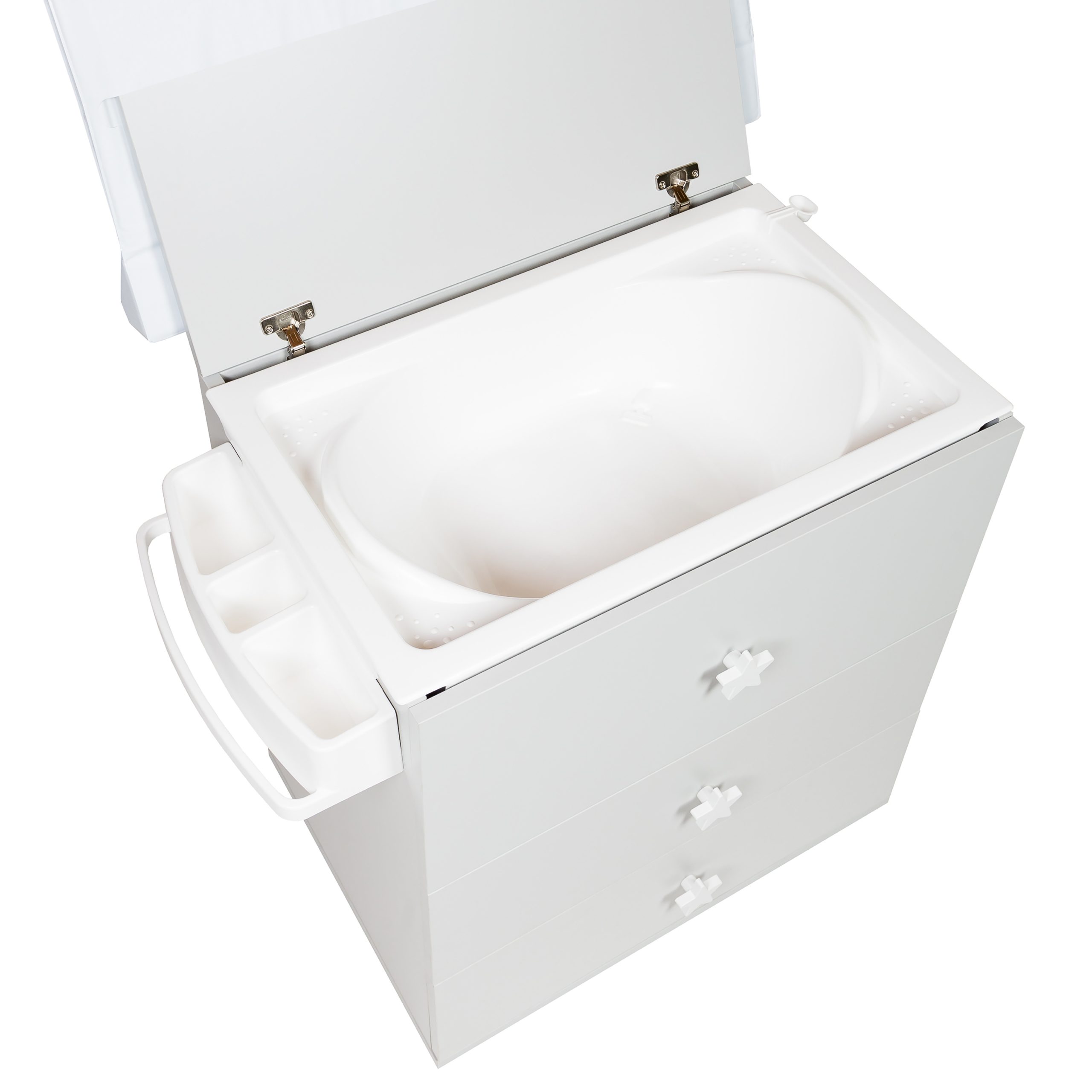 La cubeta y el cambiador pueden retirarse y se convierte en una bonita y práctica cómoda. Medidas del mueble bañera cambiador: 92 x 97 x55 cm
